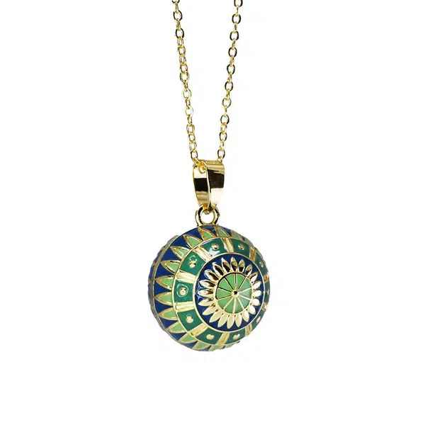 Bola de grossesse à motif Rosace Bleu/Vert 22MM avec chaine fine plaqué Or – Personnalisable et Création Française