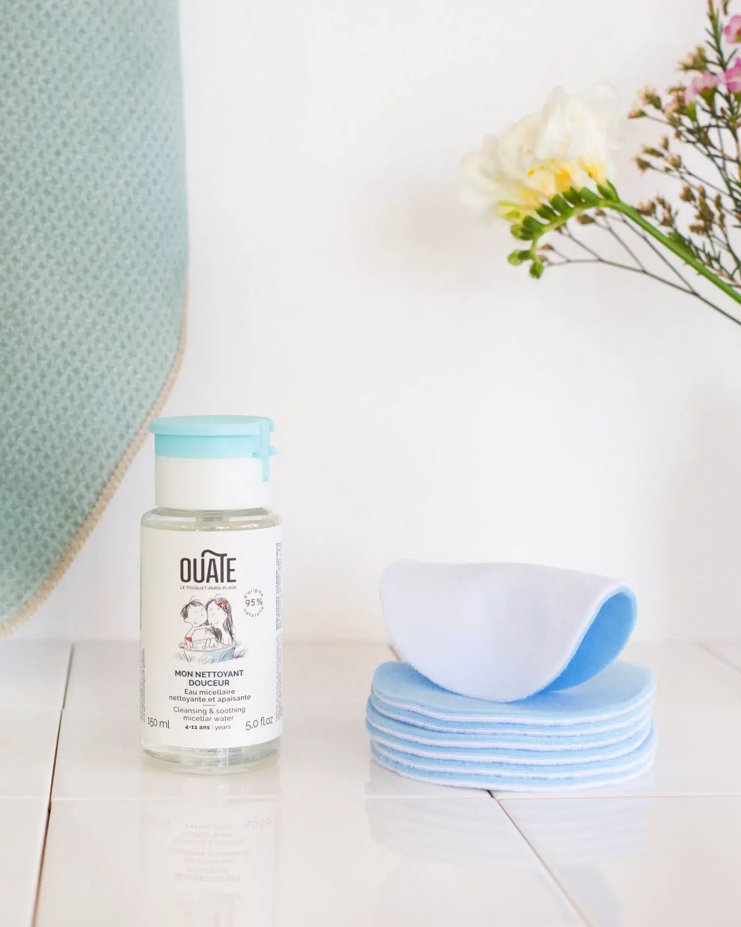 La peau du visage des enfants, plus fine et exposée à la pollution, a besoin d’un nettoyage doux au quotidien. Mon nettoyant douceur nettoie, hydrate et apaise instantanément, avec une formule naturelle, vegan, fabriquée en France et adaptée aux peaux sensibles dès 4 ans.