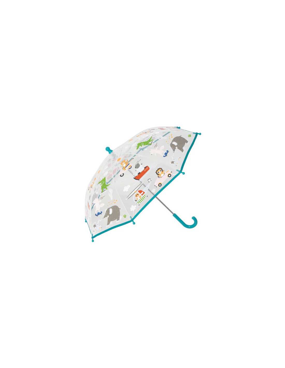 Découvrez le parapluie animaux et transportse transparent et magique de Little L, un magnifique parapluie illustré avec des animaux et des moyens de transport en plastique transparent qui change de couleurs sous la pluie. Un parapluie spécialement conçu pour les enfants de plus de 3 ans, offrant à la fois protection et amusement les jours de pluie.